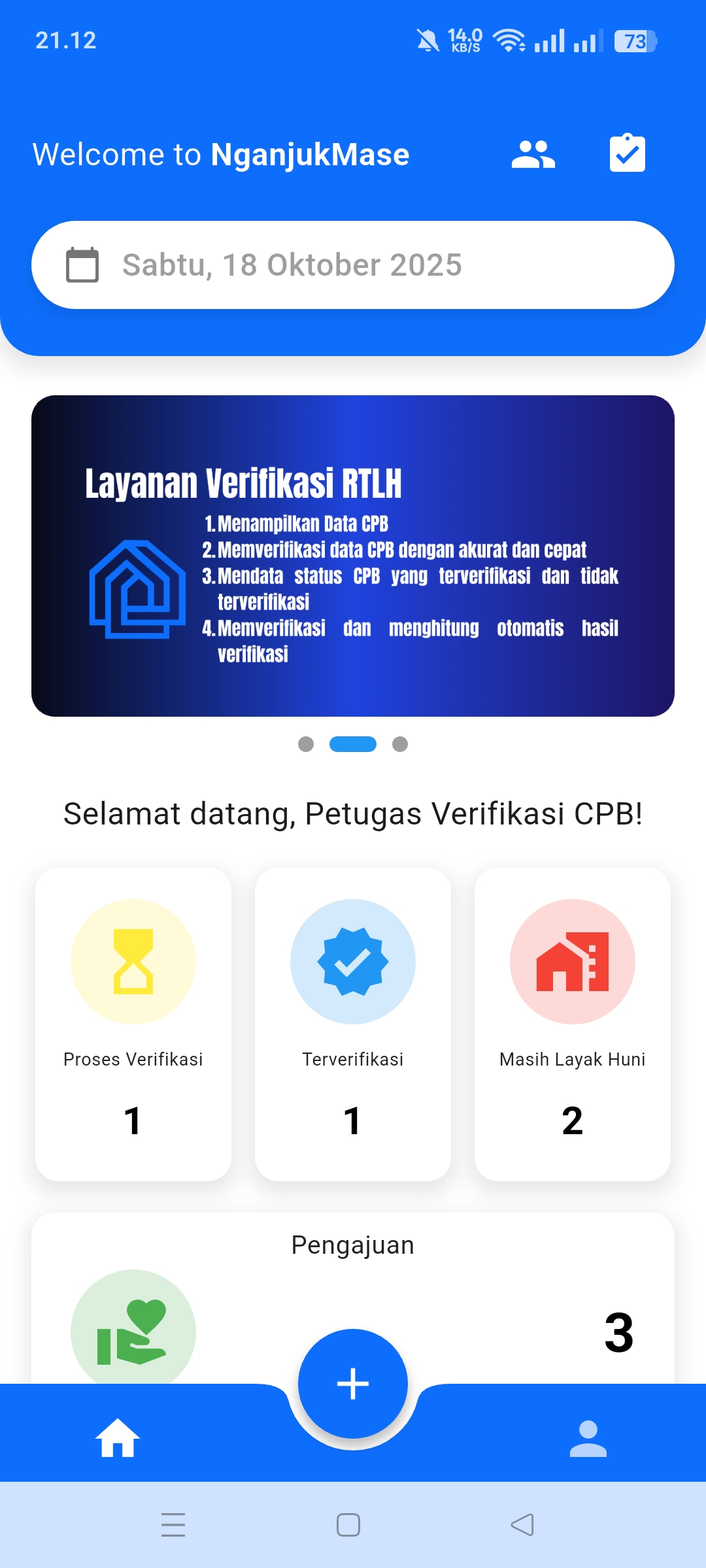 Developed the Nganjuk Mase mobile app, designed for verification officers from the Department of Public Housing to verify uninhabitable house data from registered CPB data. The app integrates seamlessly with the Nganjuk Mase website for efficient data management and verification tasks.