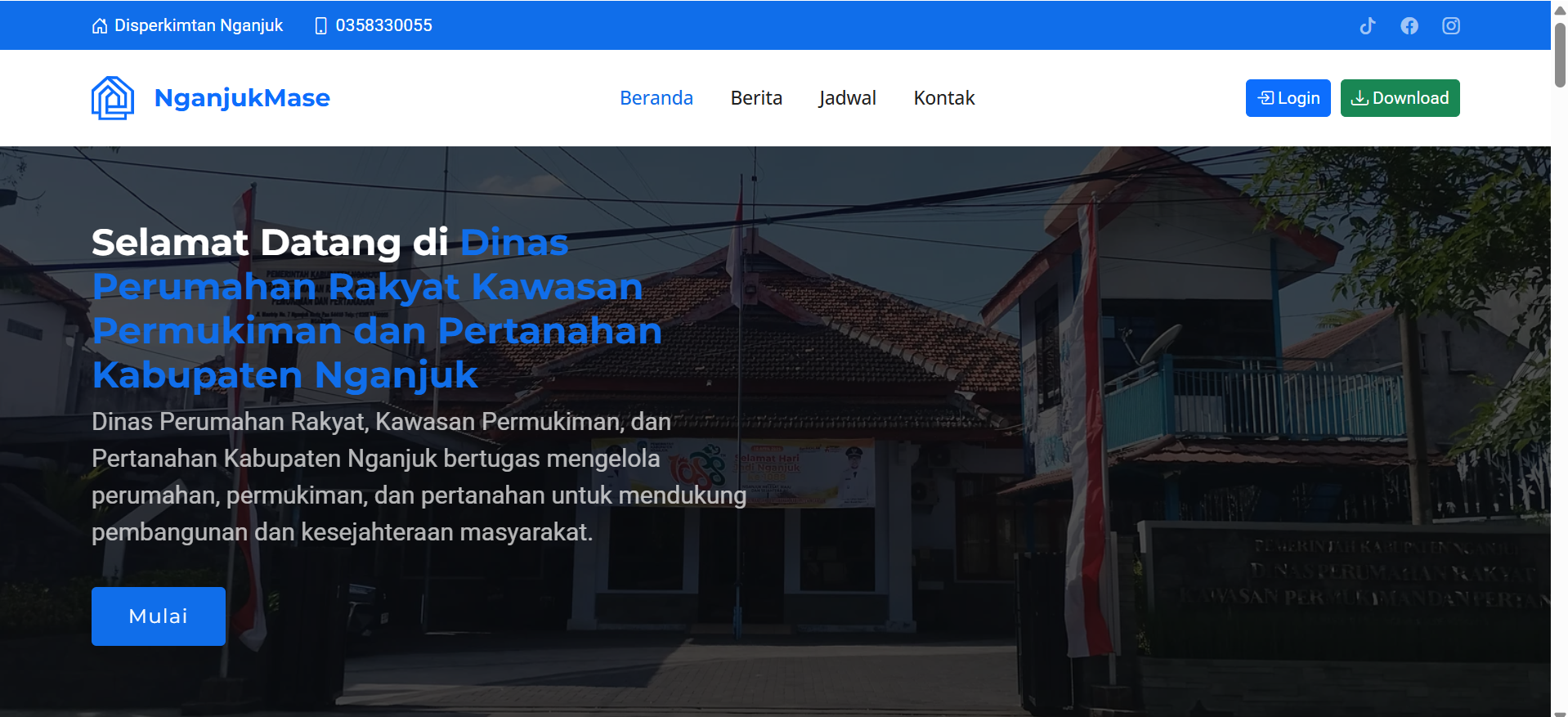 Developed the Nganjuk Mase website, which provides news and schedules from the Department of Public Housing, Settlement Areas, and Land Affairs in Nganjuk Regency. The website also manages CPB data for potential housing aid recipients, streamlining data collection and related services.